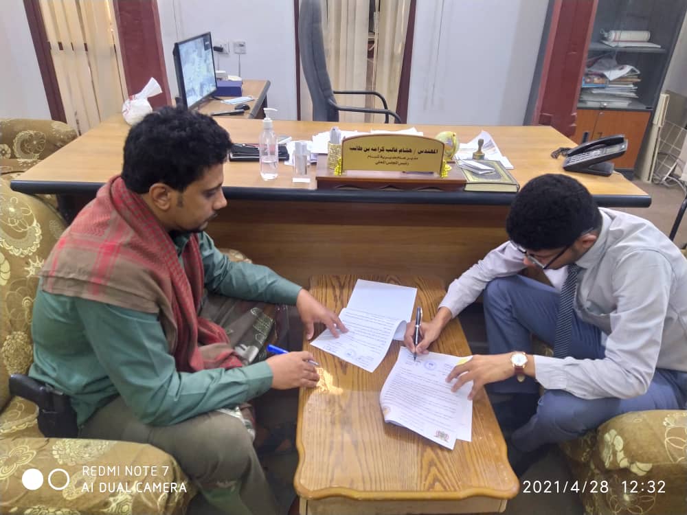 وجرى توقيع اتفاقية عمل الشراكة بين الطرفين بحضور رئيس لجنة التخطيط والتنمية بمديرية شبام ومندوب فرع النقابة بالمديرية ومهندس السلطة المحلية أنور القيسي .