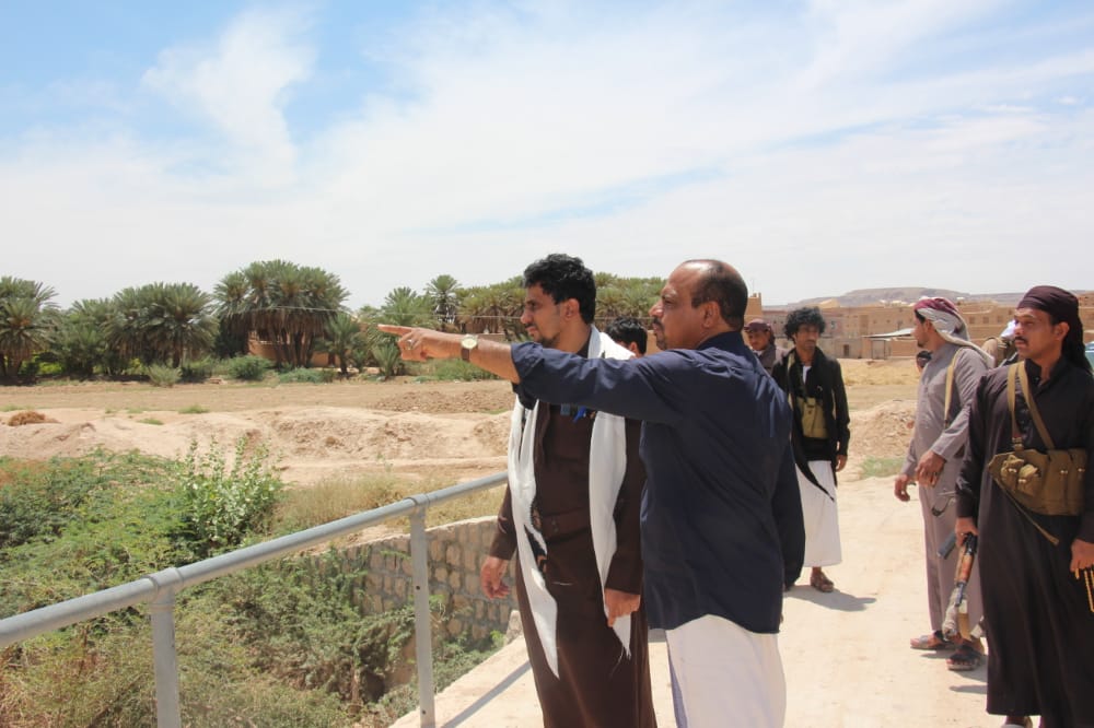 واطّلع المدير العام في زيارة لموزع الماء لمسيال شبام والذي يتم عبره توزيع المياه بين الجروب التي تروى بالربة غرب وشمال مدينة شبام التاريخية ومسيال مدينة شبام والتي لوحظ انسداد المجرى بأشجار السيسبان التي تسبب خطورة كبيرة على أهالي المدينة التاريخية شبام وكافة المديرية.
