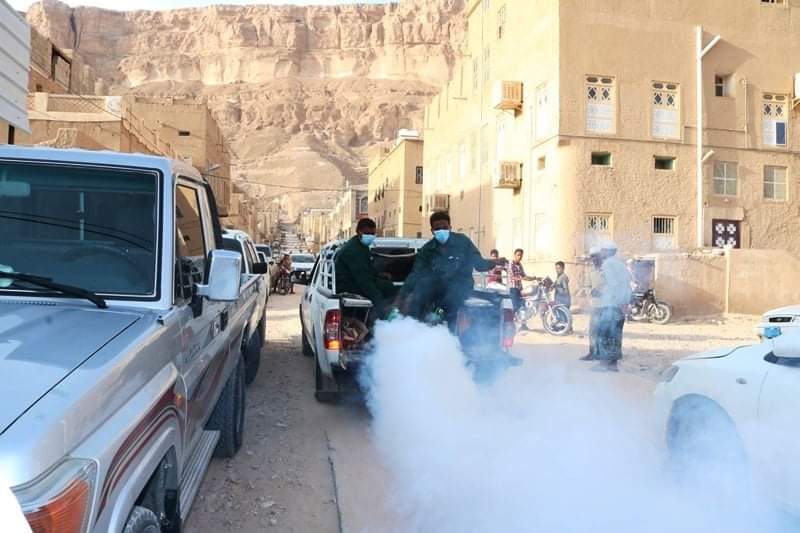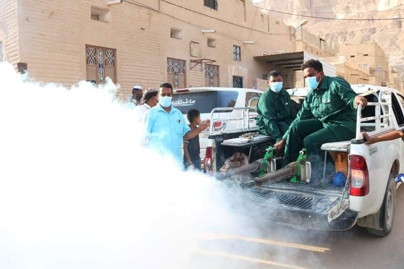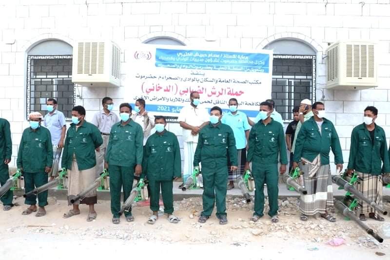 بتمويل من السلطة المحلية بوادي حضرموت مكتب الصحة بالوادي يدشن حملة الرش الضبابي [ الدخاني ] بمديريات تريم وسيئون