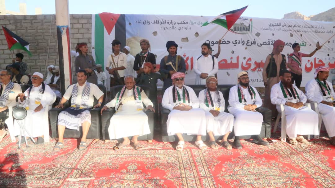 كما أعلن الامين العام المساعد لمرجعية حلف قبائل حضرموت الوادي والصحراء يسر محسن العامري تضامنهم ودعمهم الغير المحدود لإخوانهم المرابطين في فلسطين وتأييد قضيتهم العادله ونيل حقوقهم الكاملة غير منقوصة.