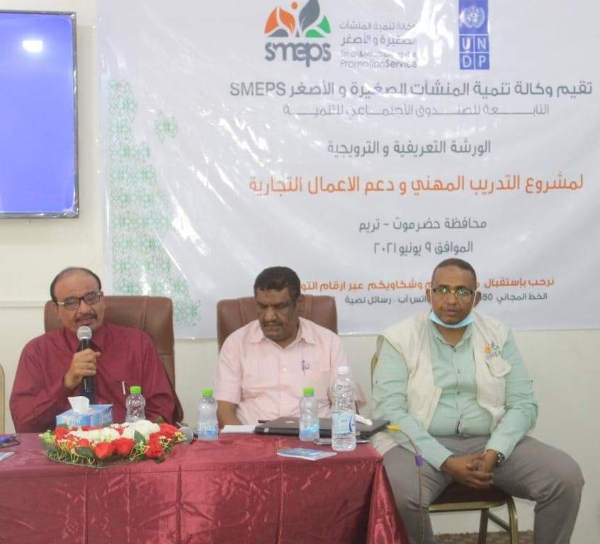 عُقدت اليوم في مديرية تريم بحضرموت ورشة تعريفية وترويجية لمشروع التدريب المهني ودعم المهارات التجارية ، نظمتها وكالة تنمية المنشآت الصغيرة والأصغر التابعة للصندوق الاجتماعي للتنمية.