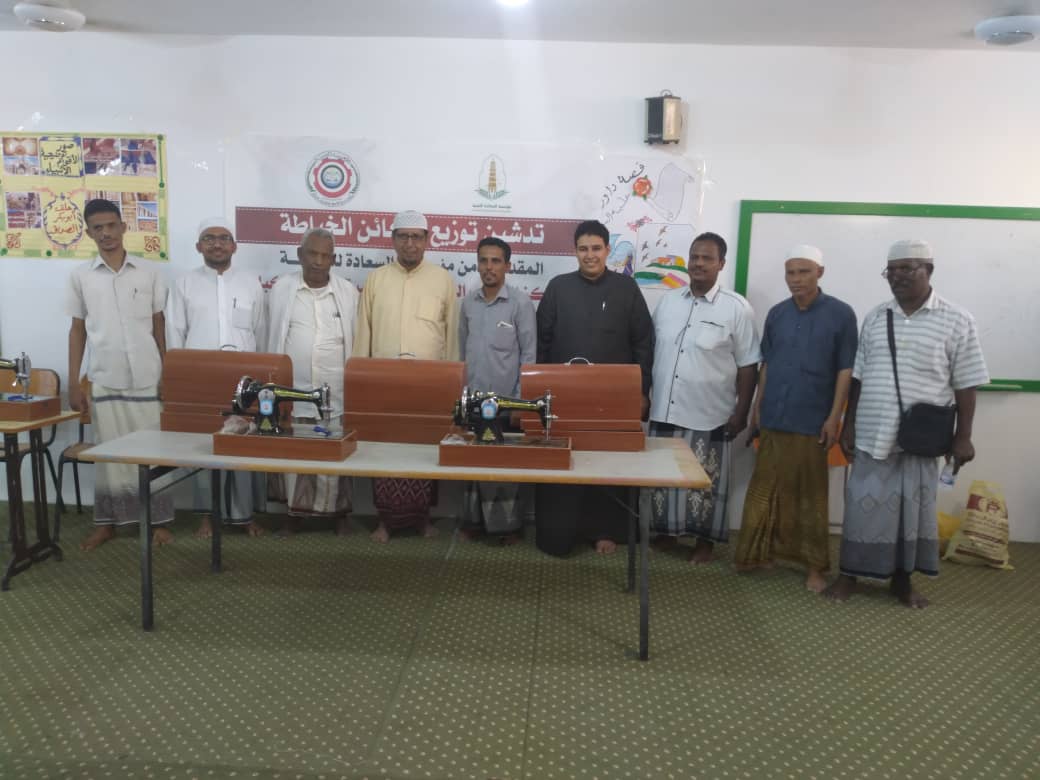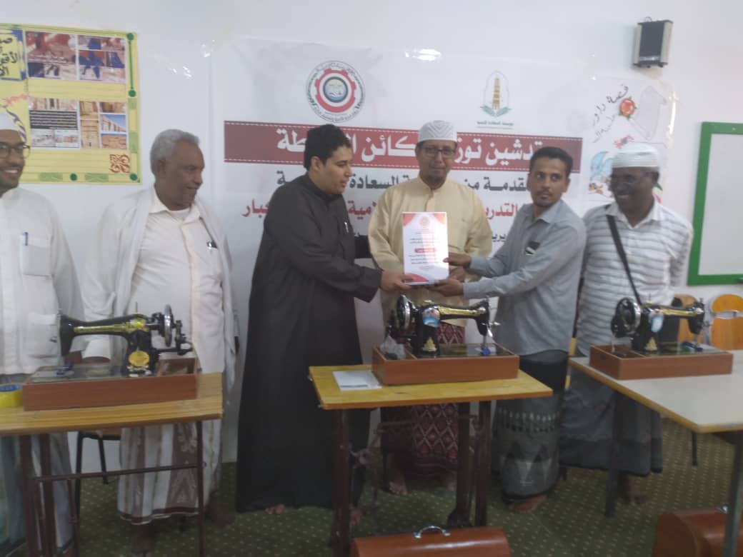 تدشين توزيع مكائن الخياطة المقدمة من مؤسسة السعادة للتنمية لمراكز التدريب النسوي لمحو الأمّية وتعليم الكبار، بمديريات سيؤن- تريم