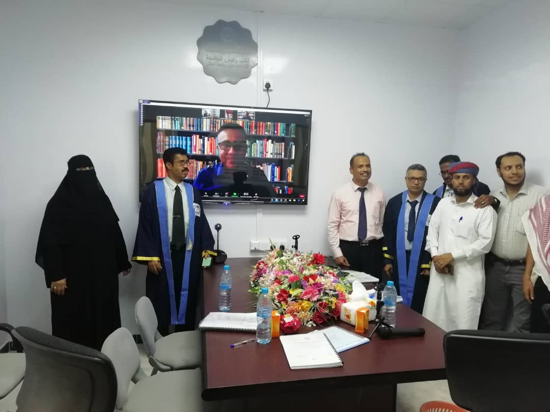 جامعة حضرموت تمنح الباحث علي عمر البهيشي درجة الماجستير من كلية العلوم الإدارية احتضنتها القاعة الألكترونية بالدراسات العليا برئاسة الجامعة