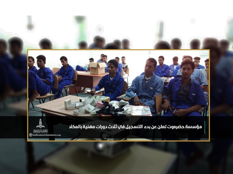 مؤسسة حضرموت تعلن بدء التسجيل في ثلاث دورات مهنية بالمكلا