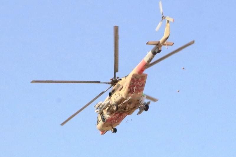طائرة مروحية توزع هدايا وتهاني عيديه في مصليات العيد بمدينة سيئون