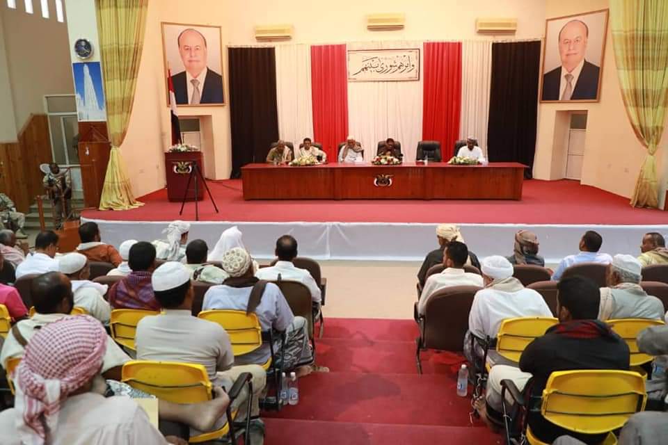 محافظ حضرموت يلتقي بالمشائخ القبلية والخطباء والشخصيات الاجتماعية وممثلي منظمات المجتمع المدني وقطاعي المرأة والشباب بالوادي والصحراء