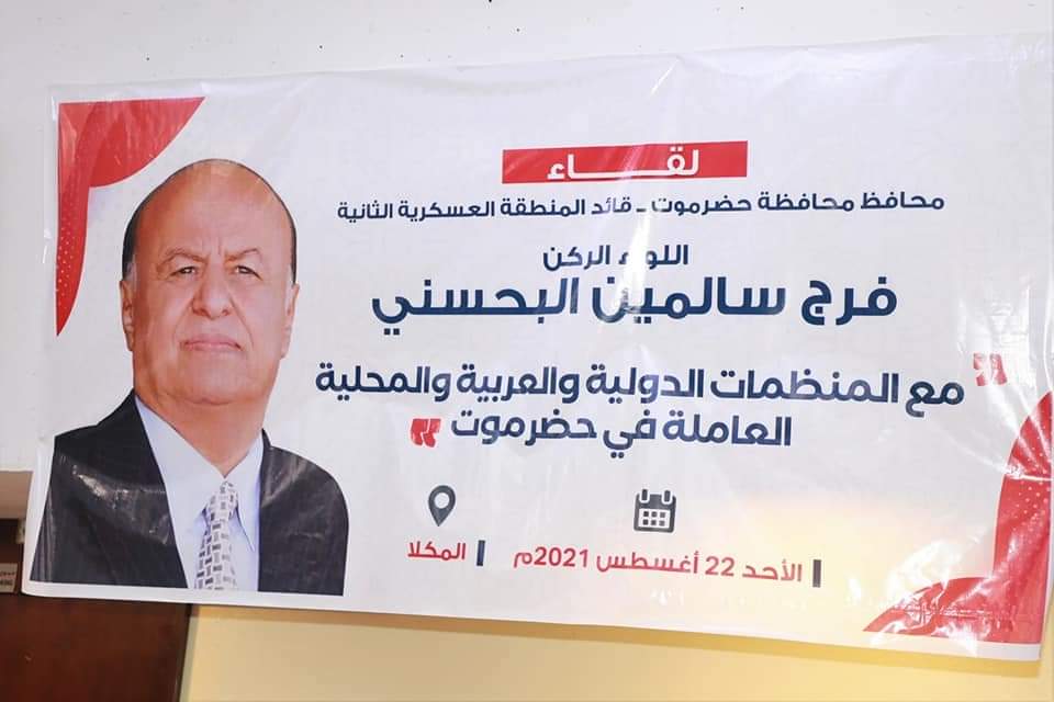 عقد محافظ حضرموت قائد المنطقة العسكرية الثانية اللواء الركن فرج سالمين البحسني، اليوم بالمكلا، لقاءً مع ممثلي المنظمات الدولية والعربية والمحلية العاملة في المحافظة، في إطار اللقاءات التي تنظمها السلطة المحلية مع مختلف المكونات والقوى السياسية والمنظمات والقطاعات، بهدف تدارس الأفكار لمساعدة المواطنين نتيجة لصعوبة المعيشة في ظل الظروف الصعبة وتدهور العملة المحلية.