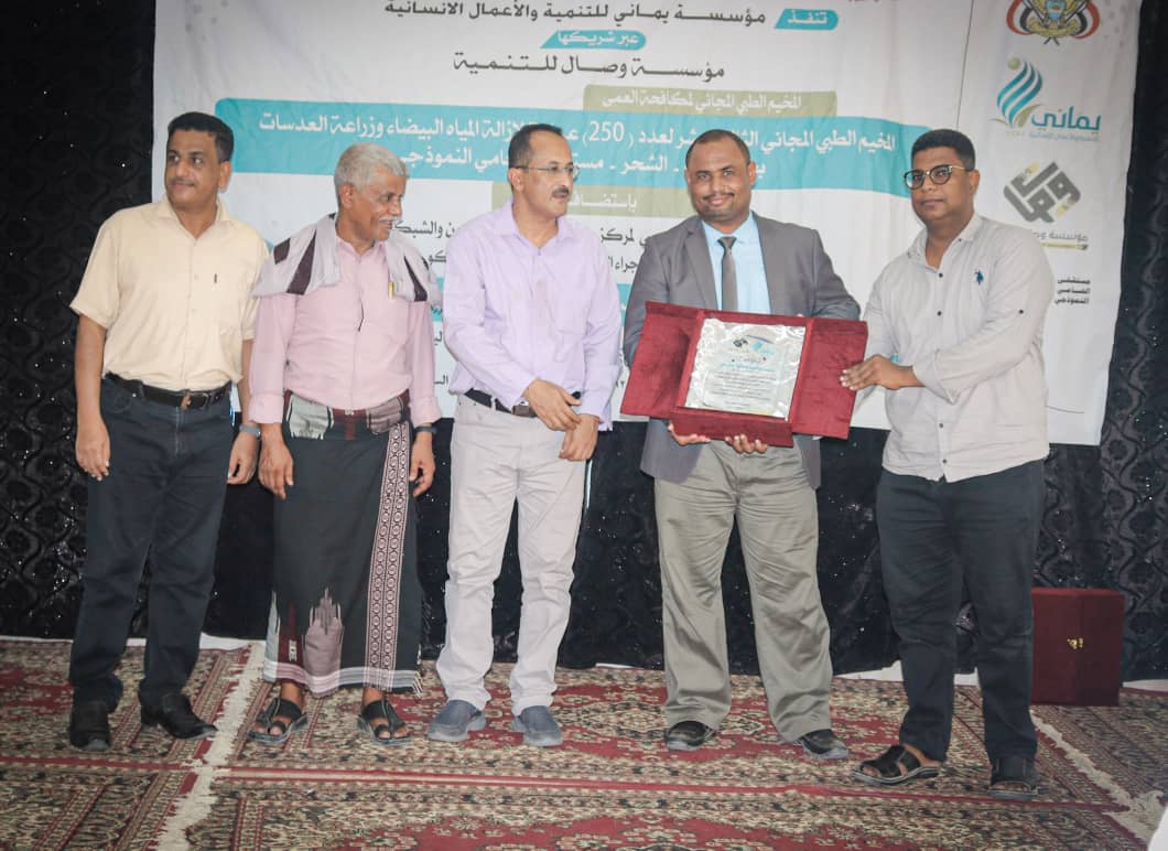 بعد ذلك قام وكيل حضرموت للشئون الفنية المهندس أمين بارزيق والمدير العام لمديرية الشحر الأستاذ عادل باعكابة والمدير العام لمكتب وزارة الصحة العامة والسكان بحضرموت الساحل الدكتور محمد الجمحي بتكريم الطاقم الطبي وكذلك المسهمين في إنجاح فعاليات المخيم الطبي وتسليمهم الشهادات والدروع التذكارية.