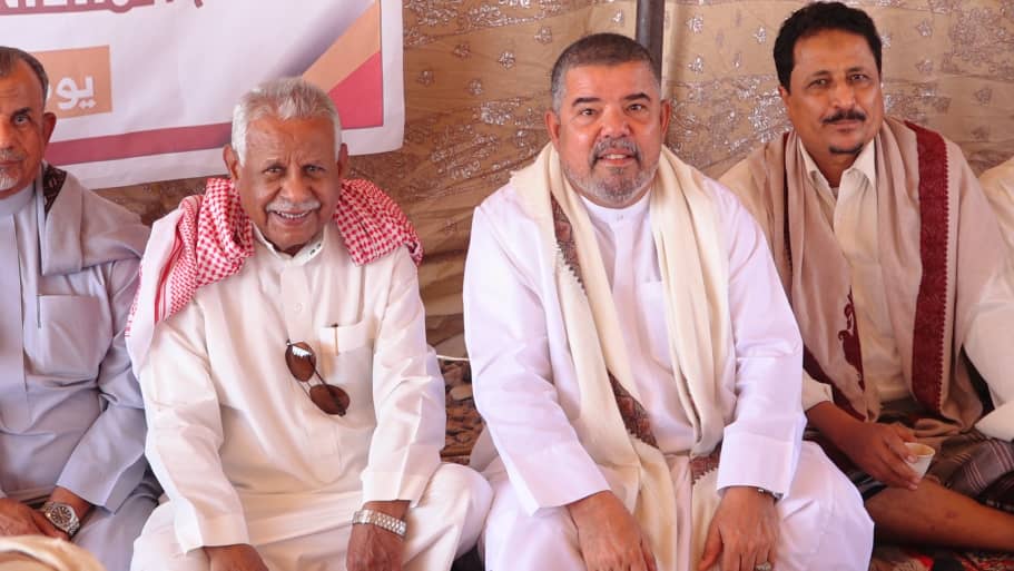 وتضمنت اللجنة في رئاستها الوكيل المساعد لشئون الصحراء الحكم محمد الصيعري وعضوية مقادمة ووجهاء ومناصب وشخصيات اخرى اجتماعية للقاء بين الطرفين والحكم والفصل في القضية المتنازع عليها ارض منطقة سنا القريبة من حقول النفط بمديرية غيل بن يمين وفقا والقانون .