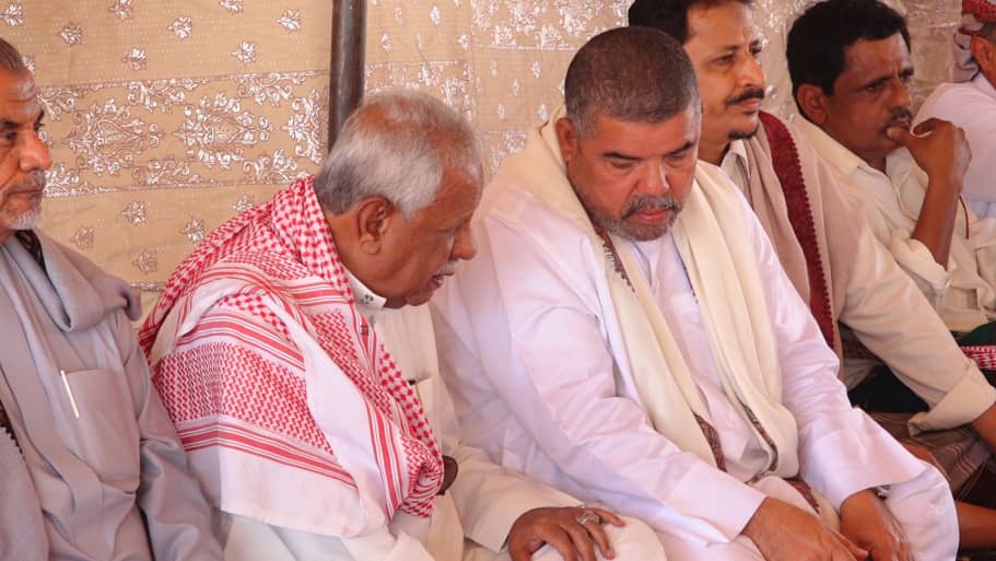 وتضمنت اللجنة في رئاستها الوكيل المساعد لشئون الصحراء الحكم محمد الصيعري وعضوية مقادمة ووجهاء ومناصب وشخصيات اخرى اجتماعية للقاء بين الطرفين والحكم والفصل في القضية المتنازع عليها ارض منطقة سنا القريبة من حقول النفط بمديرية غيل بن يمين وفقا والقانون .