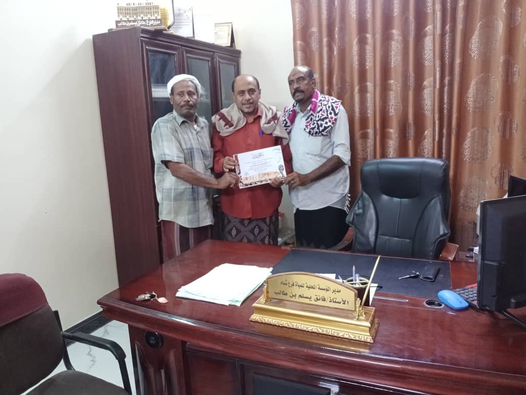 عدة الألعاب الشعبية الشبواني بمدينة شبام تكرّم مدير المياه بن طالب بشهادة شكر وتقدير