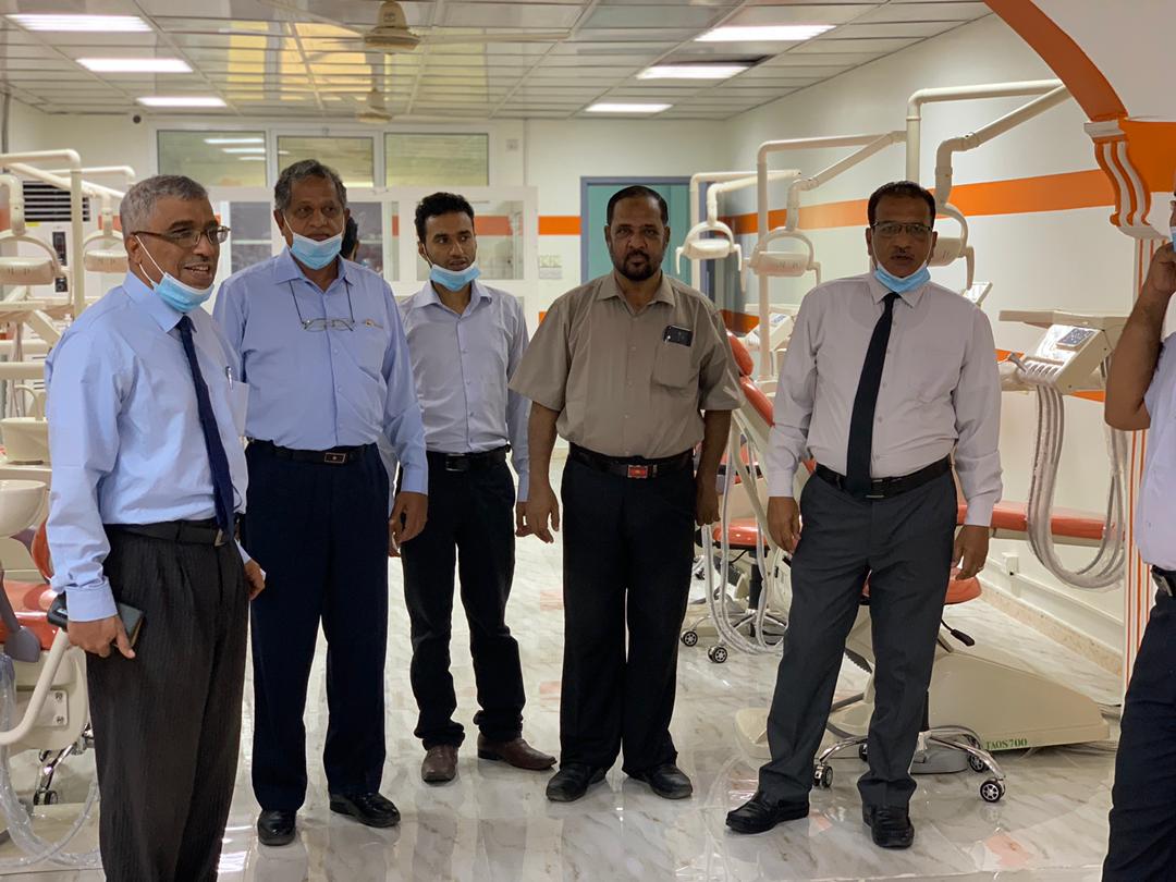 جاء ذلك خلال الزيارة الميدانية والاستطلاعية التي قامت بها اللجنة الوزارية برئاسة الأستاذ الدكتور / خالد عمر باسليم وكيل وزارة التعليم العالي والبحث العلمي للشئون التعليمية والوفد المرافق له إلى كلية الطب والعلوم الصحية بجامعة العرب بمدينة المكلا حيث كان في استقبالهم الدكتور عبود العبل رئيس الجامعة والدكتور صالح خنبش عميد كلية الطب والعلوم الصحية والدكتور عيسى البعداني عضو مجلس الأمناء المدير العام لمستشفى الريان التخصصي وعدد من الأطباء والأساتذة وأعضاء هيئة التدريس بالجامعة وطاف الوكيل باسليم بمعية رئيس الجامعة ومرافقيهم على الأقسام التي تضمها كلية الطب والتخصصات والمعامل والمختبرات واستعموا من القائمين عليها إلى شرح حول تنفيذ آلية البرامج العلمية حسب التقويم الجامعي وكذا برنامج التطبيق العملي مطلعين على التجهيزات المستحدثة لافتتاح العيادات الجديدة لطب الأسنان ضمن مخرجات برنامج طب الأسنان بكلية الطب والعلوم الصحية لخدمة المجتمع ‘ وكذلك التعرف على القاعات التدريبية لطلاب الأمتياز لبرنامج طب الأسنان الذي تم تجهيزها بأحدث التقنيات والوسائل التعليمية .