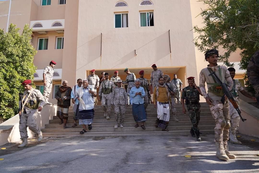 رافق محافظ حضرموت، عضوا مجلس النواب الشيخ محمد حسن بن عبدالرب العمودي، والشيخ محمد بن مالك، ومدير عام مديرية دوعن سالم بانخر، ومدير عام مكتب وزارة الأشغال العامة والطرق بساحل حضرموت الدكتور محمد باخلعة، ومدير عام مكتب المحافظ ناصر القرزي، ورئيس أركان المنطقة العسكرية الثانية العميد ركن عويضان سالم عويضان، وعدد من القيادات العسكرية بقيادة المنطقة العسكرية الثانية.