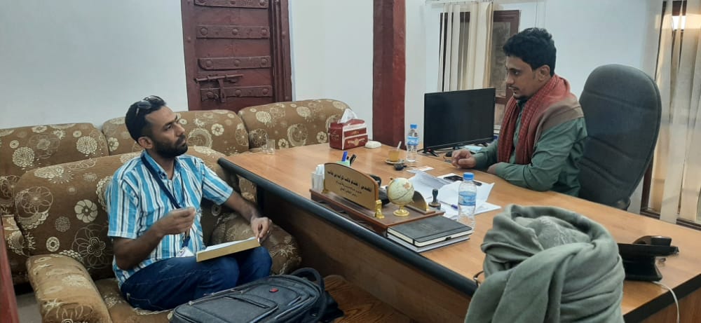 مدير عام مديرية شبام يناقش المشروع البيومتري لتحديث بيانات المستفدين من برنامج الغذاء العالمي.