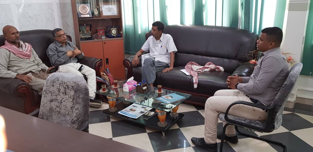 الشيخ بن هلابي والقائم باعمال مدير عام الغرفة التجارية بحضرموت، يرحبان بزيارة ممثلي الهيئة الحقوقية الحضرمية للغرفة.