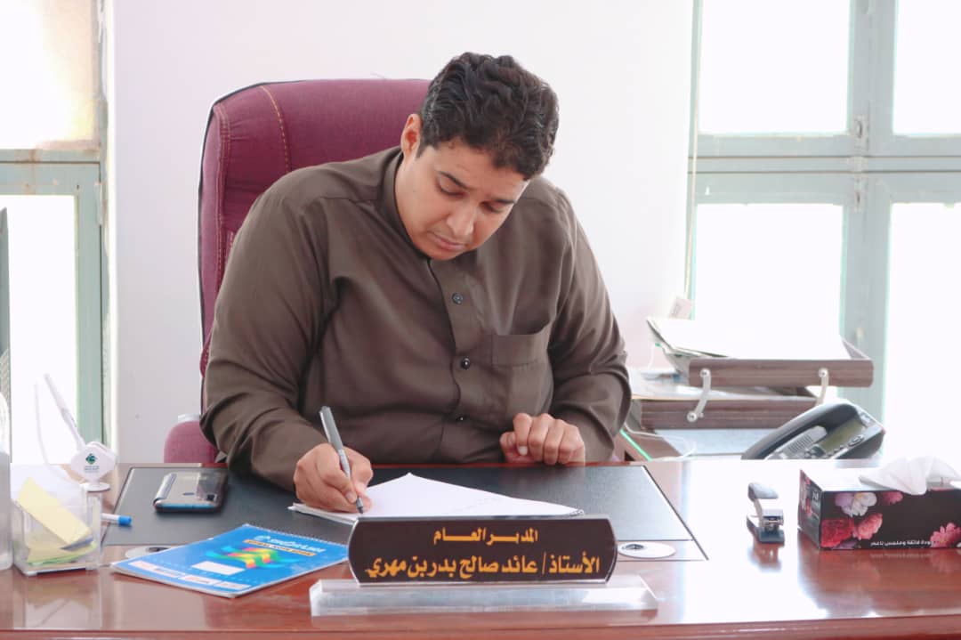 ناقش مدير عام محو الأمية وتعليم الكبار بالوادي والصحراء الأستاذ عائد صالح بدر بن مهري صباح اليوم جملة من القضايا والهموم التعليمية وحقوق المعلمات بصفوف محو الأمية بمديرية سيئون.