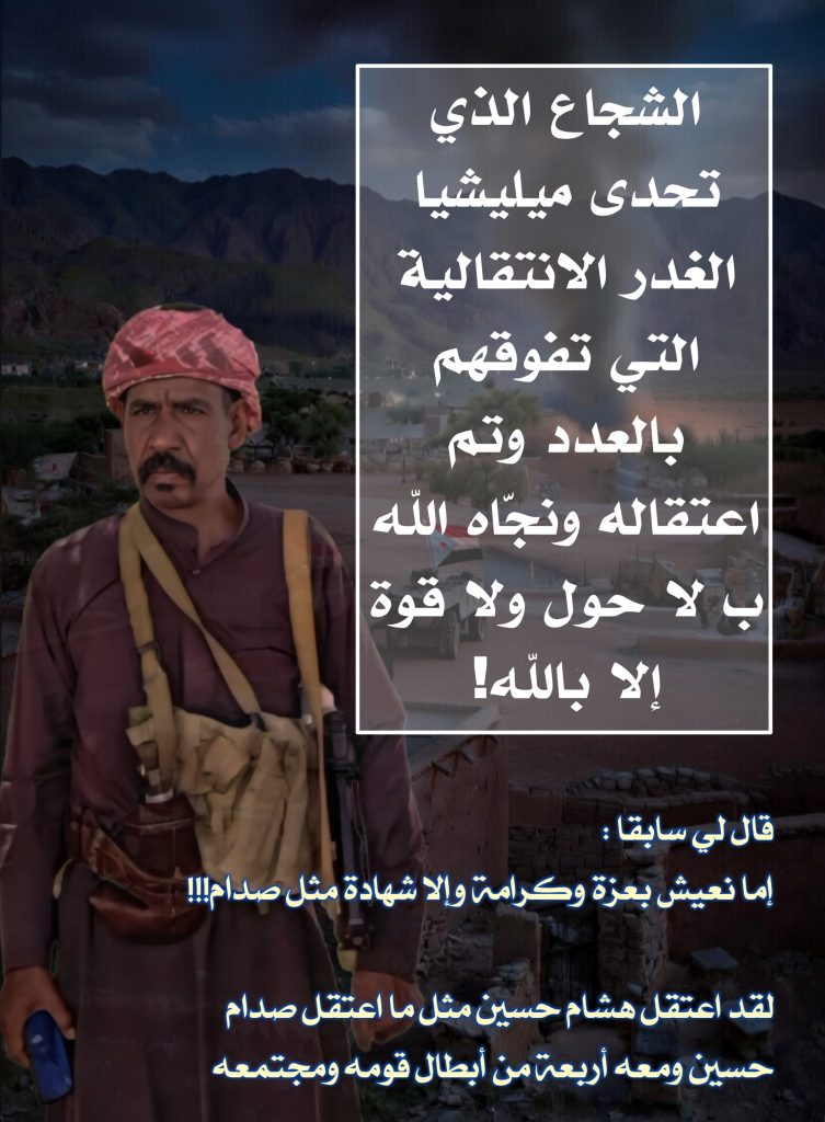 لقد اعتقل هشام حسين مثل ما اعتقل صدام حسين ومعه أربعة من أبطال قومه ومجتمعه وهم: