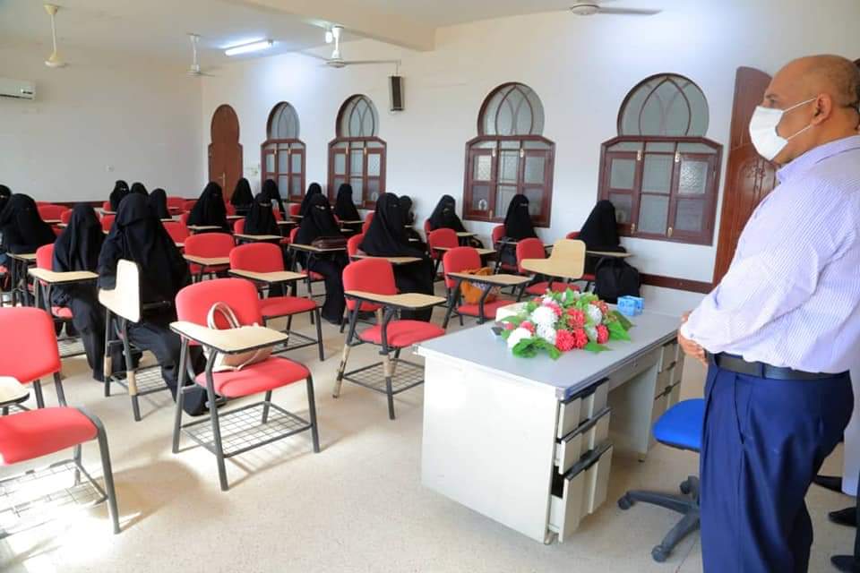 وتعرف وكيل المحافظة ومعه مدير عام مكتب وزارة الصحة العامة والسكان بوادي حضرموت والصحراء الدكتور هاني العمودي خلال جولتهما في قاعات الجامعة من وكيل فرع الجامعة الدكتور عبدالله بن عثمان على الآلية التي أقرتها الجامعة لاستئناف العملية التعليمة بناء على توصية الورشة المنعقدة بالمكلا بهذا الخصوص مع التقيد بالإجراءات الاحترازية في ظل وباء فيروس كورونا .
