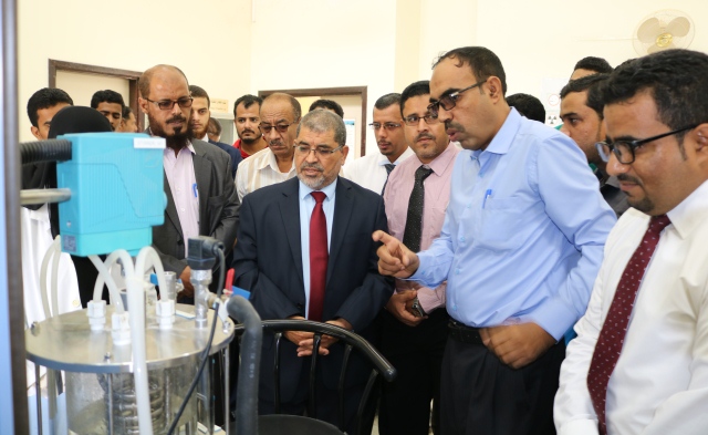 رئيس جامعة حضرموت يفتتح مختبر هندسة المفاعلات بقسم الهندسة الكيميائية بكلية الهندسة والبترول بفلك