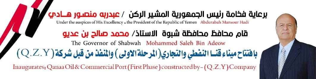 برعاية رئيس الجمهورية محافظ شبوة يفتتح ميناء قنا النفطي والتجاري ويؤكد أن الميناء سيشكل إضافة للموانئ اليمنية وسيخدم جميع المحافظات .