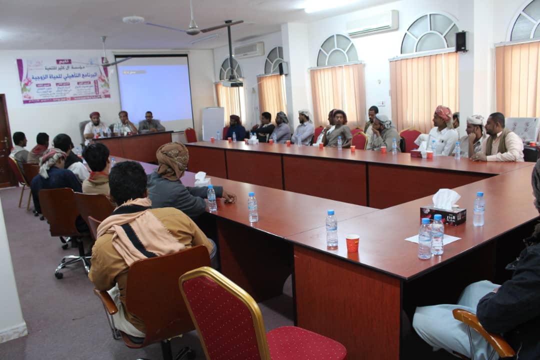 • تم اليوم تنفيذ البرنامج التدريبي لعرسان الزواج الجماعي الثاني لشباب قبيلة آل كثير والذي حمل عنوان «البرنامج التأهيلي للحياة الزوجية» والذي بدأ منذ الساعة الثامنة والنصف صباحا حتى قبيل المغرب.