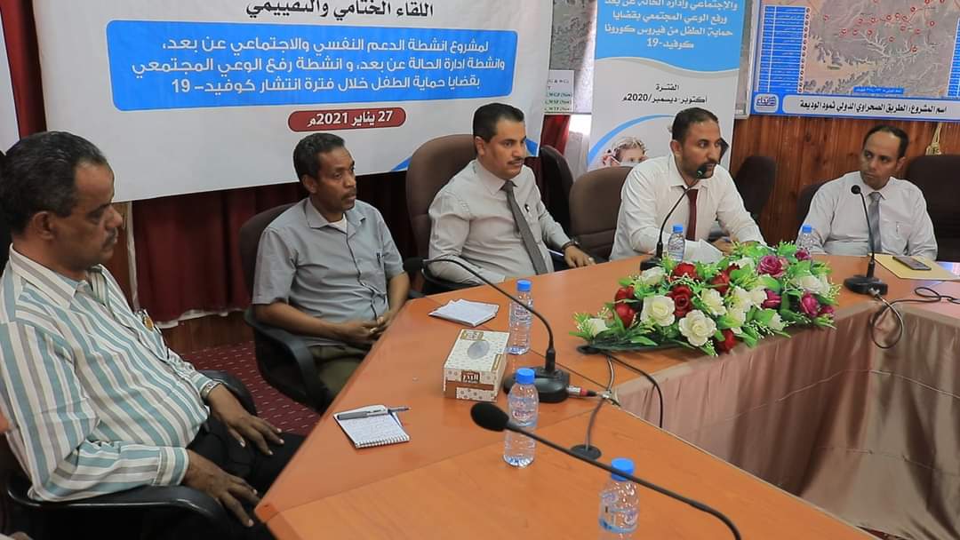 لقاء تقييمي بسيئون لأنشطة مشروع الدعم النفسي والاجتماعي وإدارة الحالة عن بُعد ، وأنشطة رفع الوعي المجتمعي بقضايا حماية الطفل