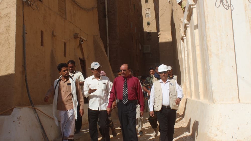 اطّلع الوكيل المساعد لشئون مديريات الوادي والصحراء الأستاذ عبدالهادي التميمي برفقة مدير عام مديرية شبام المهندس هشام غالب بن طالب ومدير مكتب الهيئة العامة للحفاظ على المدن التاريخية الأستاذ حسن عيديد صباح اليوم خلال زيارته لمدينة شبام على مشاريع الترميم والمشاريع التنموية بمدينة شبام التي تشرف عليها الهيئة العامة للحفاظ على المدن التاريخية .