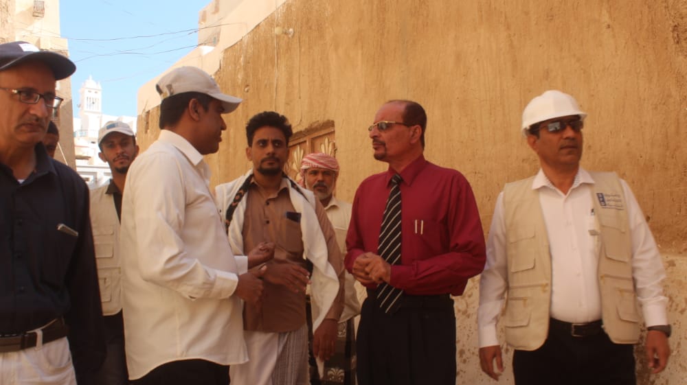 وتعرّف الوكيل التميمي في بداية زيارته على تطورات المشروع الطارئ الممول من الشركة العربية للاسمنت والذي يهدف إلى إعادة ترميم ومعالجة أضرار أربعين منزل من منازل المدينة التاريخية شبام .