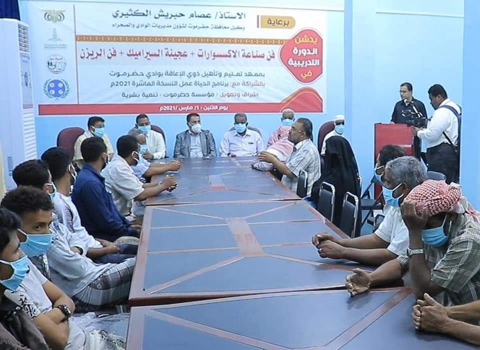 دشّن وكيل محافظة حضرموت المساعد لشؤون الوادي والصحراء المهندس هشام محمد السعيدي ، اليوم ، دورة تدريبية في مجال فن صناعة الاكسسوارات وعجينة السيراميك وفن الريزن ، التي ينفذها مركز تعليم وتأهيل ذوي الإعاقة بوادي حضرموت بالشراكة مع برنامج الحياة عمل النسخة العاشرة 2021م واشراف وتمويل مؤسسة حضرموت للتنمية البشرية .