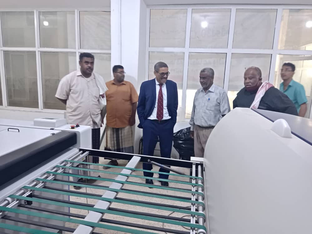 بعد ذلك قام الدكتور باسليم ورئيس مؤسسة دار باكثير ومرافقوه بزيارة تفقدية لاقسام المؤسسة تعرّف خلالها على طبيعة عمل الآلات الطباعية و الإنتاج الفني لإصدار الصحيفة الأسبوعية.