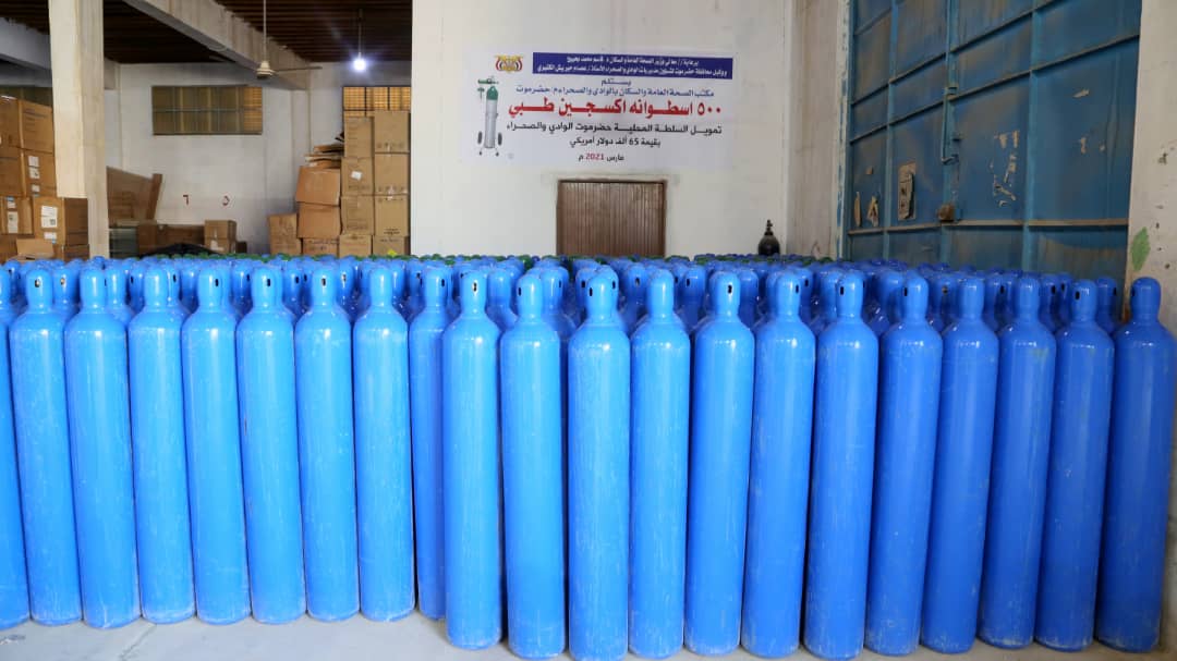 صحة وادي حضرموت تتسلّم 500 اسطوانة اكسجين طبي بتمويل من السلطة المحلية بوادي حضرموت