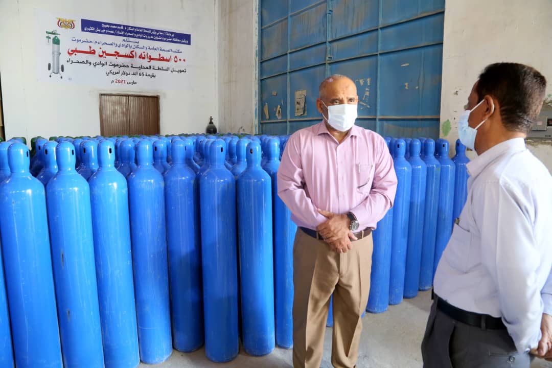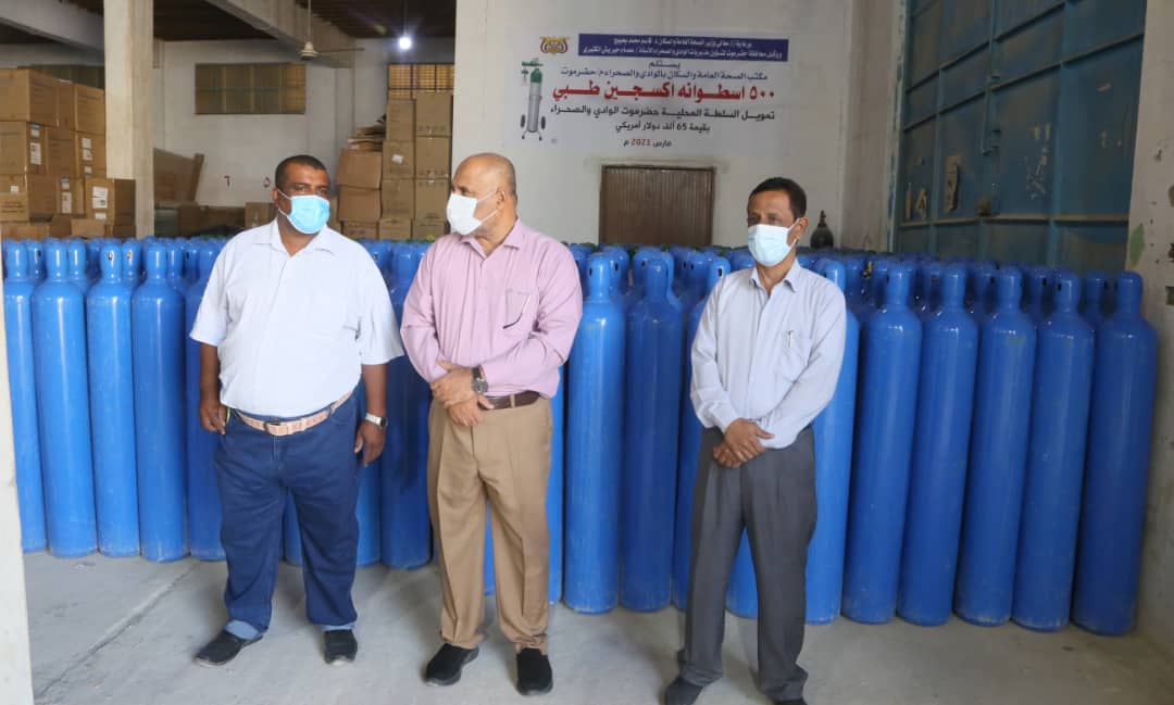 تسلّم مكتب الصحة العامة والسكان بوادي حضرموت والصحراء، اليوم، 500 إسطوانة اكسجين طبي كدفعة ثانية مقدمة من السلطة المحلية بالوادي والصحراء بكلفة إجمالية 65 ألف دولار أمريكي .
