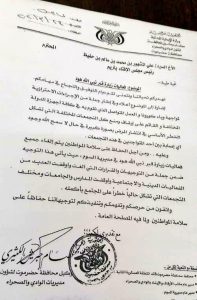وقد سبق أن اتخذ الوكيل قرار حازم موجه لقائد المنطقة العسكرية الأولى بمنع دخول القات لأول نقطة تابعة لنطاق الوادي ، وقرار بإغلاق أسواق القات موجه لمدير عام الأمن والشرطة بالوادي والصحراء