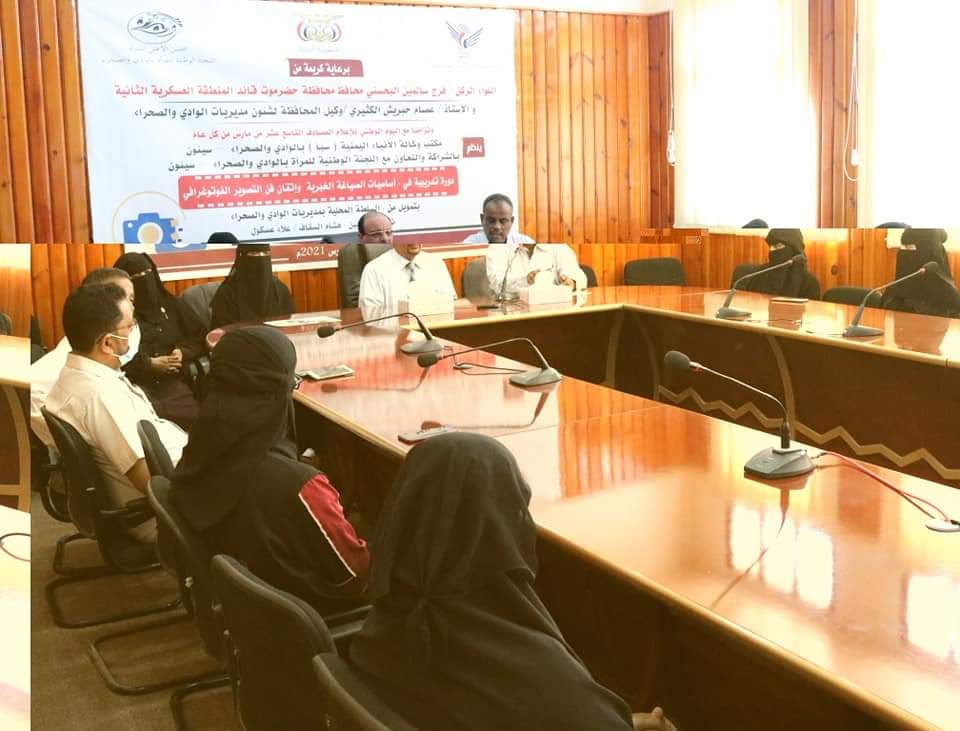 وتهدف الدورة على مدى ثلاثة أيام الى إكساب (20) من الإعلاميات في المرافق الحكومية والجمعيات النسوية في مدينة سيئون معارف ومهارات في أساسيات الصياغة الخبرية الإعلامي هشام السقاف، واتقان فن التصوير الفوتوغرافي للمصور علاء عسكول.