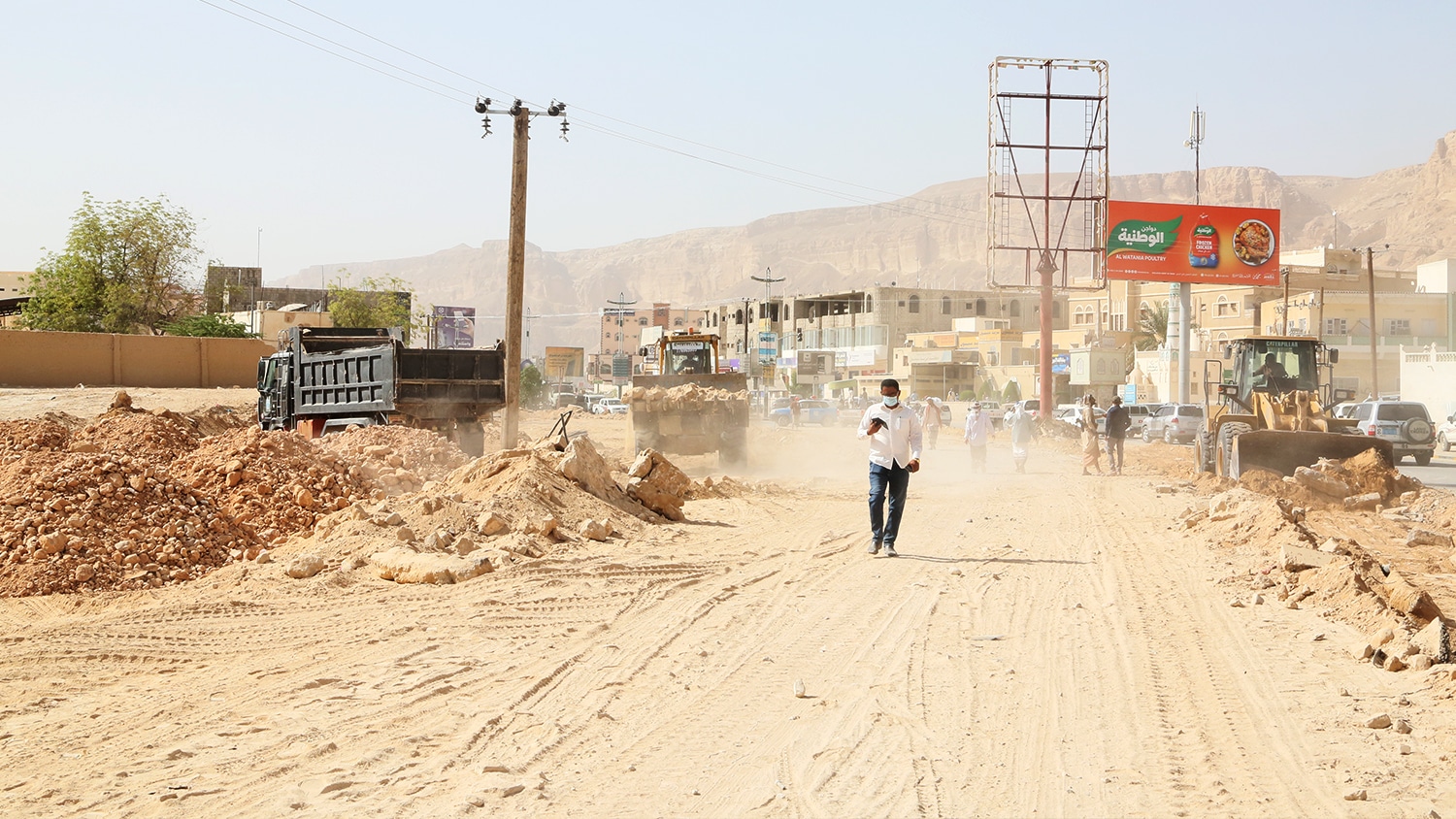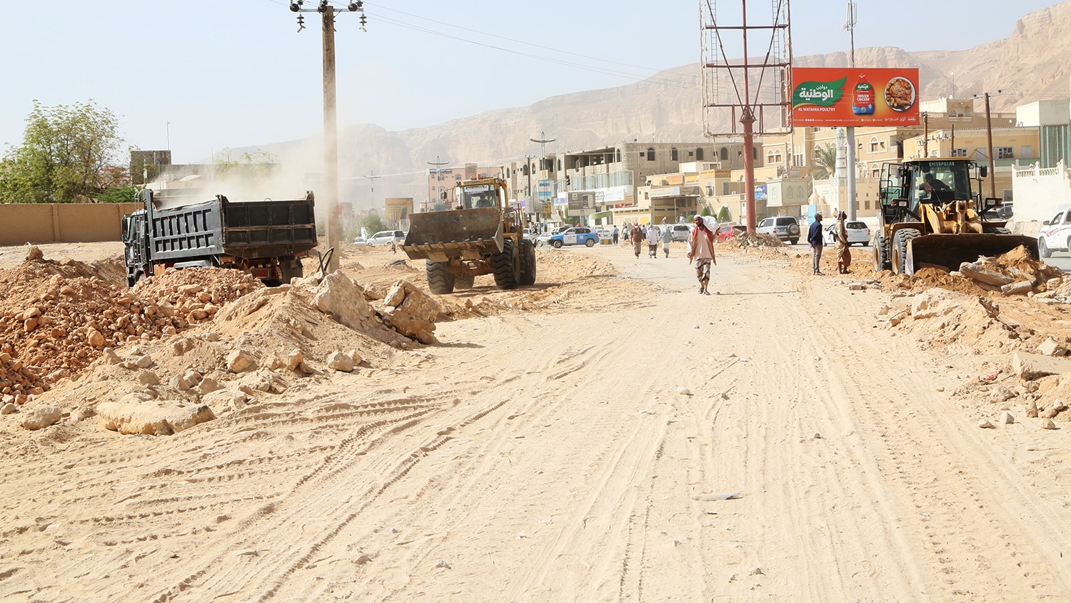 وكيل وادي حضرموت عصام الكثيري يتفقد سير العمل في مشروع توسعة شارع الجزائر الرئيسي بسيئون