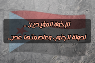 إقرا أكثر »للأخوة المؤيدين … لدولة الجنوب وعاصمتها عدن …