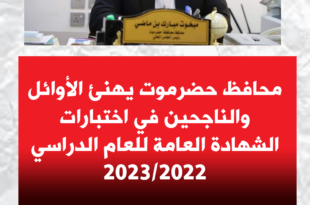 محافظ حضرموت يهنئ الأوائل والناجحين في اختبارات الشهادة العامة للعام الدراسي 2023/2022 …
