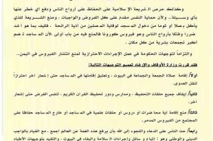 نص البيان الحمدلله وحده وبعد : •• نظرا لما يمر به العالم من جائحة فيروس …